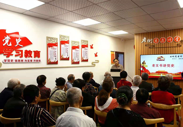 結合群眾喜好“擺龍門陣”的生活習慣,古路鎮利用黃金閣社區老年服務中心開設了“老街慈孝講堂”,不定期邀請“五老”和“理論麻辣燙”宣講員講黨史故事。在這里,群眾可以喝茶聊天、看黨史圖書、聽黨史故事,還可以根據定制的100道黨史故事“菜單”點單故事內容。