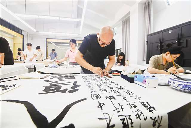 7月1日,四川美術學院,師生們正在書寫習近平總書記在慶祝中國共產黨成立100周年大會上的講話金句。首席記者 龍帆 攝/視覺重慶