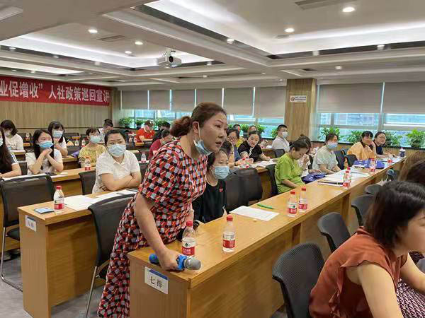 沙坪壩區就業和人才中心統籌就業管理科負責人王文鋼,圍繞就業創業政策進行宣講;沙坪壩區社會保險事務中心二級主任科員薛偉,就社會保險業務經辦進行工作經驗分享;沙坪壩區勞動保障監察大隊監察員肖青青,通過豐富的案例,對涉及勞動者的法律法規進行普及;沙坪壩區勞動人事爭議仲裁院四級主任科員游新宇以勞動仲裁為主題,開展政策法規宣傳;沙坪壩區人力社保局基金監督科科長薛茜從維護全區社;鸢踩椒運行的角度,進行全面細致分析。