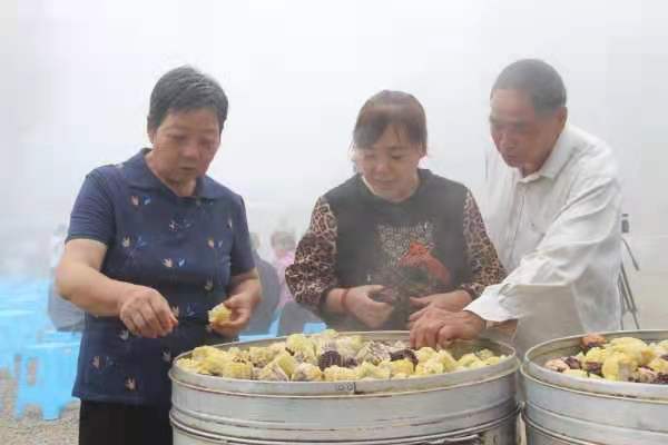大家品嘗剛從鍋里蒸好的甜糯玉米。天星寺鎮供圖