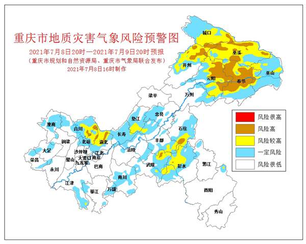 人民網重慶7月8日電 7月8日16時,重慶市規劃和自然資源局、重慶市氣象局聯合發布全市地質災害氣象風險預警。
