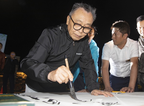 軍旅書法家方慰三進行書法創作。曾英豪攝