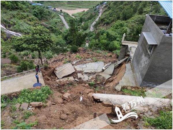 7月11日10時許,斜坡體中前部出現滑塌,11時許出現大面積滑動,造成道路移位垮塌30米,2棟房屋被移位淹埋。