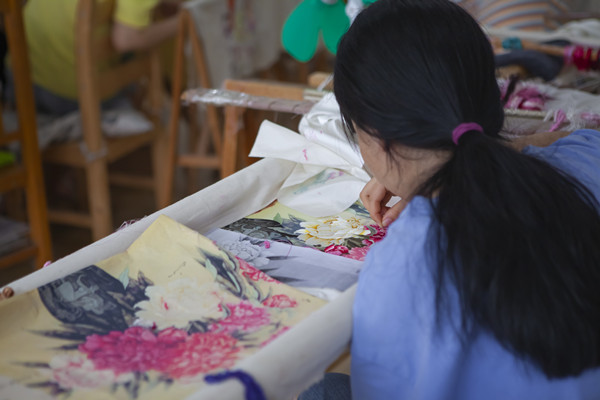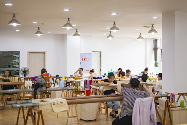 “三峽繡”的工作人員正在飛針走線。光大銀行重慶分行供圖