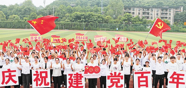重慶三峽醫藥高等?茖W校在畢業典禮上舉行了800人合唱的《沒有共產黨就沒有新中國》快閃活動,全體畢業生重溫了李大釗的名篇《青春》,以青春的名義向祖國宣誓:“請黨放心,強國有我!”