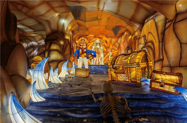 據了解,長達130米的巨型冒險海盜船將亮相本次燈光秀現場;顒又,“瘋狂加勒比”“史前巨型鯨骨”“黑珍珠酒吧”“海盜驚魂鬼屋”等項目的絢爛燈光秀搭配環境式音效,營造出一場視聽盛宴,為游客奉上身臨其境般的游樂體驗。