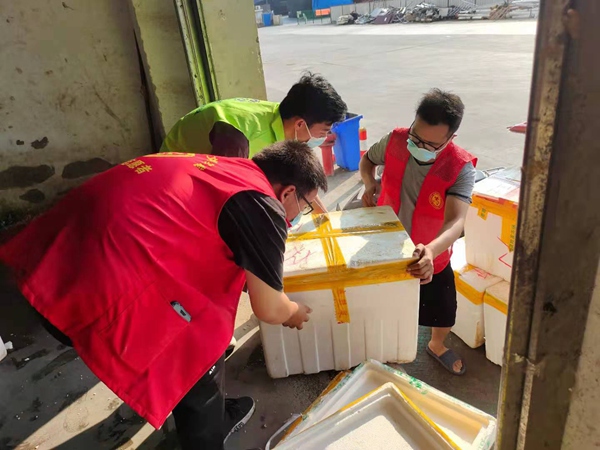 連日來,江津雙福志愿服務隊的志愿者們通宵達旦,前往酒吧、冷飲店等有冰塊儲存的商戶協商拿取冰塊,再和雙福街道辦事處商討后,及時將冰塊運往需要降溫的檢測點及社區。