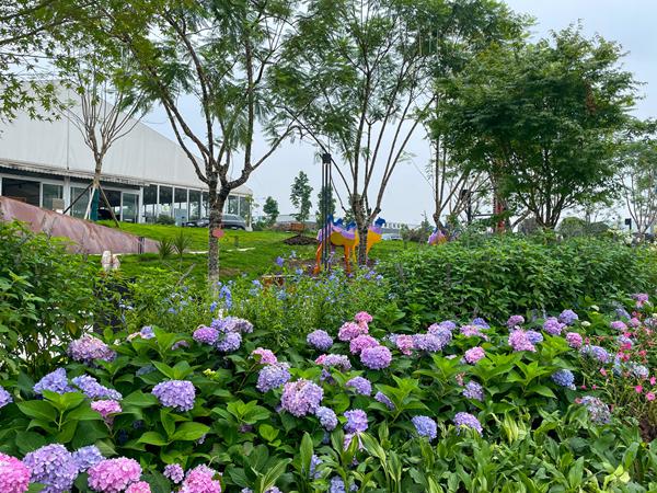 絲路花街共有280余種花卉,花卉及綠化面積達10萬平方米。走進“絲路花街”,最奪人眼球的就是“一帶一路”商品展示交易中心旁的“藍花楹大道”,每到花期來臨,道旁種植的藍花楹綻放朵朵可愛的藍色小花,給花街增加了幾分風情與浪漫。