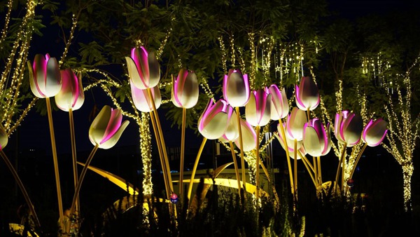 人民網重慶8月5日電 日前,兩江新區寸灘國際新城保稅經濟區的“絲路花街”步行街現已對外開放。在這里,市民不僅能欣賞絲路風光,還能徜徉花海,感受燈影帶來的藝術體驗。