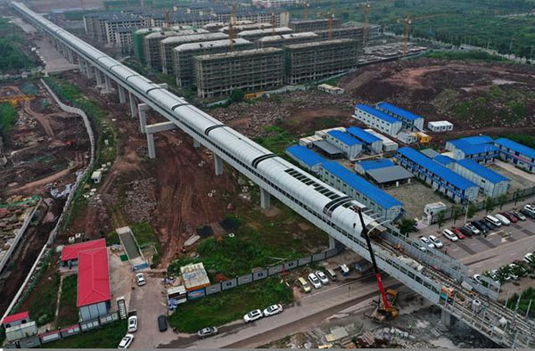 重慶軌道交通九號線建設場景。郵儲銀行重慶分行供圖