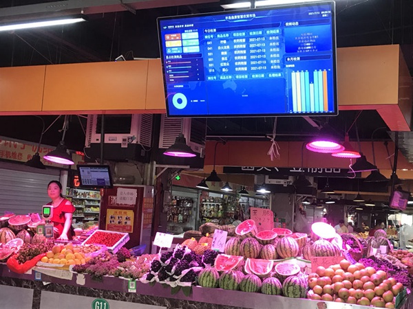 作為“智慧監管”農貿市場,半島逸景每個攤位上方都安裝有一塊智慧屏幕,全面展示菜品價格、計量結果、信譽評分等。消費者買菜時,掃描屏幕二維碼即可完成交易,相關交易信息也將通過后臺直接接入價格監管平臺。市場監管部門可隨時掌握日常價格波動信息,一旦發現擾亂市場的價格行為,立即處置、精準打擊。