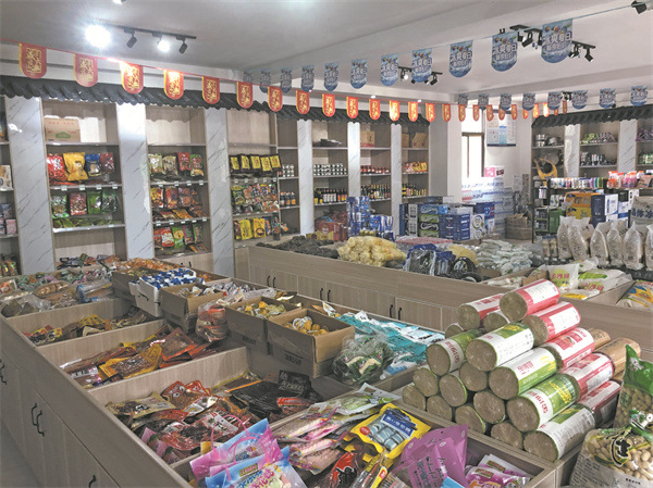 在仙女湖鎮竹子社區,5棟嶄新的樓房特別顯眼,道路兩旁栽滿香樟樹和桂花樹,每隔一段距離就放置有一個垃圾桶,路面既整潔又干凈。樓下一層全是門面,主要是開設超市和電商,超市里面整齊擺放著米、油、紙、礦泉水等各種生活用品,村民購買必需的生活物資變得極其方便。