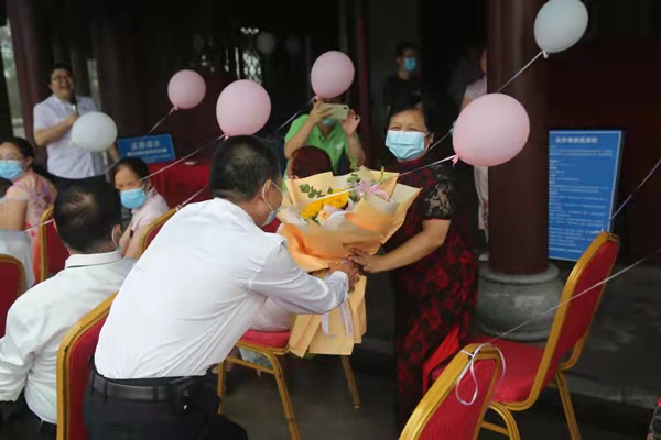 人民網重慶8月13日電 為大力弘揚中華優秀傳統文化,加強社會主義核心價值觀建設,不斷鞏固深化全國文明城區建設,積極引導人們樹立正確的愛情觀、婚戀觀、家庭觀。8月13日,在江北區委宣傳部、江北區婦聯、共青團江北區委的指導下,鐵山坪街道新時代文明實踐所組織1對金婚夫婦和6對銀婚夫婦在風景秀麗的鐵山坪森林公園云外樓開展了主題以“相約浪漫七夕 獻禮建黨百年”的七夕節主題活動。