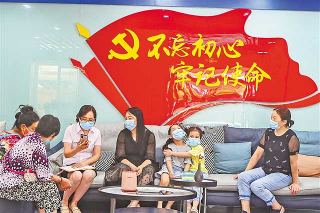 8月13日,重慶高新區曾家鎮龍臺社區,居民正在“社區客廳”咨詢就業等問題。