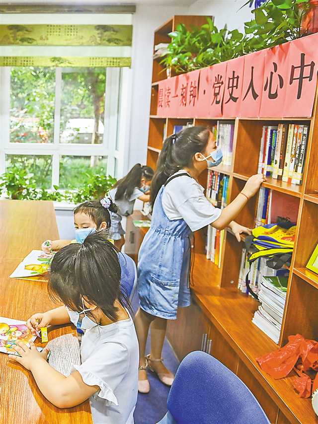 8月13日,重慶高新區曾家鎮龍臺社區服務中心,小朋友正在閱覽室看書。