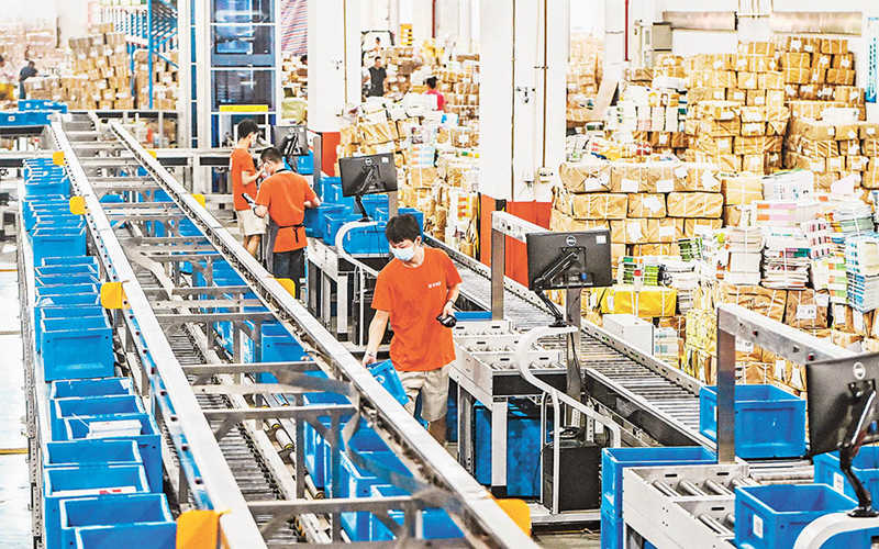 8月17日,重慶新華傳媒物流配送中心,工作人員正在分揀線上忙碌。目前,該中心日均處理書本近5000件(50萬冊)。一本書從卸車、掃描到分揀、裝車,最快30分鐘就可完成! 該中心不斷探索更快捷的物流解決方案,通過引入自動化、智能化等技術,使得業務流程更加簡潔,業務系統更加扁平高效,降低了成本,提升了物流管理與服務水平。