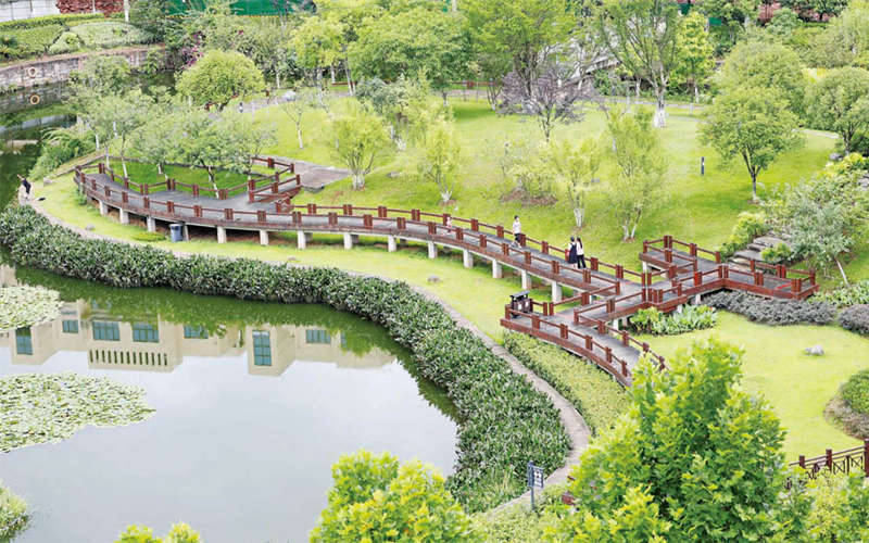 昨日,市民在永定河濕地公園的濕地棧道散步。據悉,永定河濕地公園內打造有形象廣場、空中廊橋、水上舞臺、陽光草坪、濕地棧道等多處人文景觀,是市民散步、玩耍的好去處。