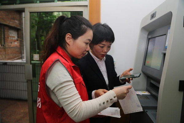 在璧山區東關社區辦稅點,稅收志愿者正在輔導市民通自助辦稅設備辦理發票業務。黃小琦攝