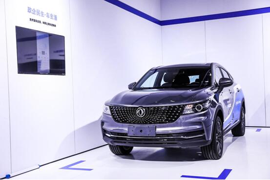 在2021智博會中央大廳螞蟻科技展位,東風小康公司和支付寶車生活合作車型風光IX5作為新一代的智能車型正式亮相。