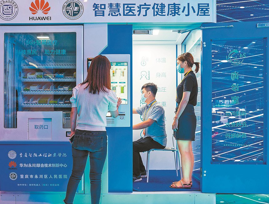 8月23日,參觀嘉賓在智慧醫療健康小屋體驗遠程問診和現場取藥。 記者 崔力 攝/視覺重慶