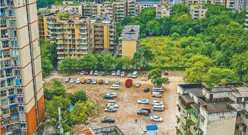 圖為8月17日,渝中區大坪街道九坑子社區,街道協調區城管局、區交巡警等多部門,將九坑子征收片區閑置空地平整后用于臨時停車,大幅緩解了周邊停車難問題。