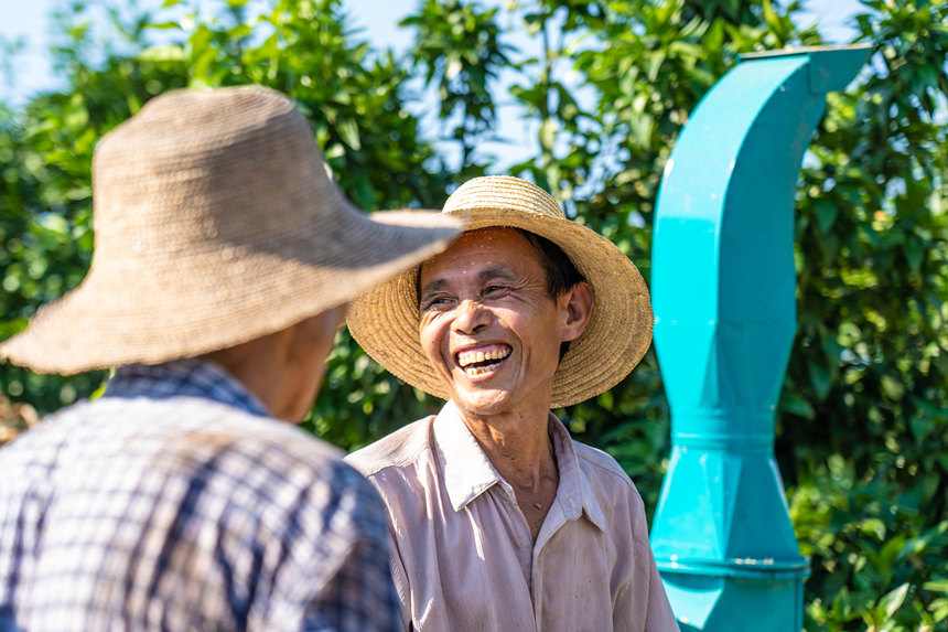 柑橘倒是種上了,可是起初,品質一般。要怎么種才能又大又甜呢?福德村請來柑橘專家,考察土壤情況,最后決定用玉米稈粉碎成末、堆放在果樹下的方法,讓土地更肥、柑橘更香。