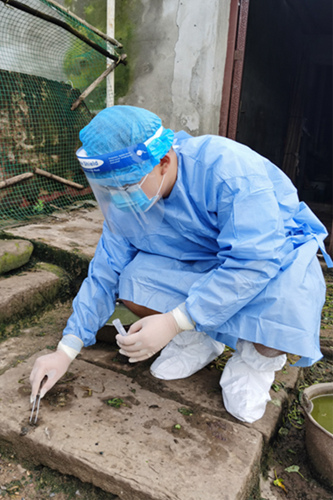 專業技術人員帶教實習人員開展人禽流感監測。江津區疾控中心供圖