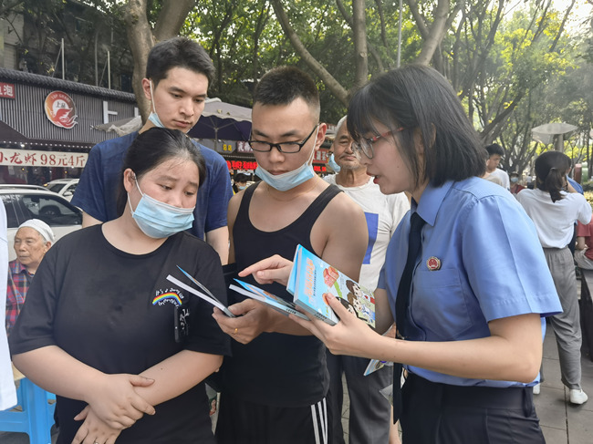 人民網重慶9月3日電 9月2日下午,在渝北區龍山街道龍脊廣場上,排隊接種疫苗的居民正在耐心等待時,被旁邊的一陣宣講聲吸引了注意力,龍山街道龍山路社區黨委聯合重慶市檢察院第五分院“莎姐”法治宣講團正在這里開展政法隊伍教育整頓工作及《民法典》宣講。