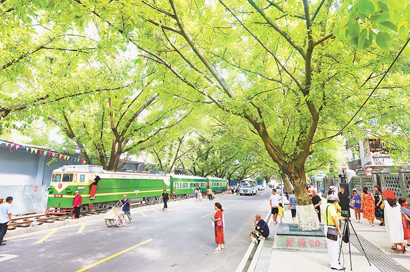 9月5日,南坪新街(緊鄰南坪后堡),市民們正以“綠皮火車”為背景拍照。