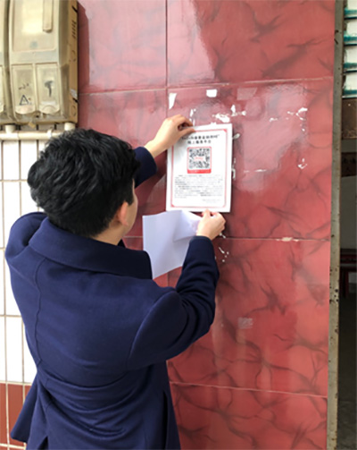 “普惠金融到村”工作組成員逐戶張貼線上平臺二維碼。工行重慶市分行供圖