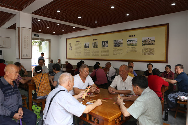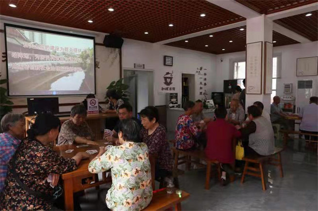 居民們在和美大院里打牌、下棋。陳家橋街道供圖