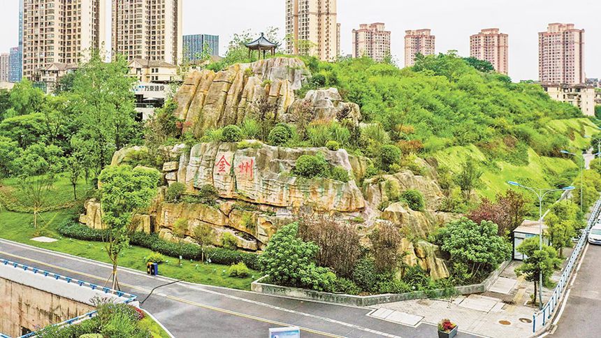九月七日,兩江新區金州大道旁的立體景觀墻。記者 張錦輝 攝\視覺重慶
