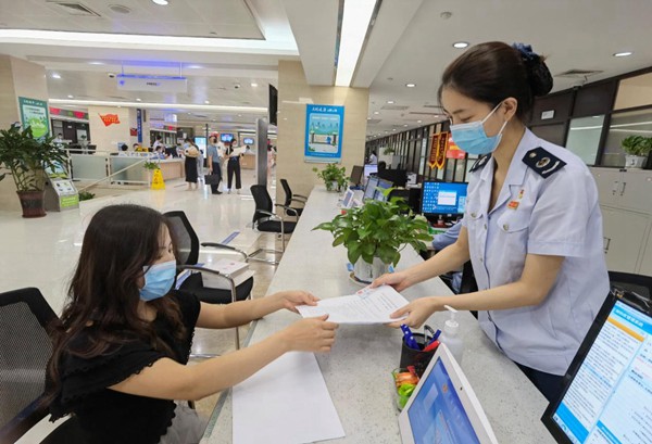 渝中區稅務局工作人員為納稅人辦理跨區(縣)遷移事項。何涵雯攝