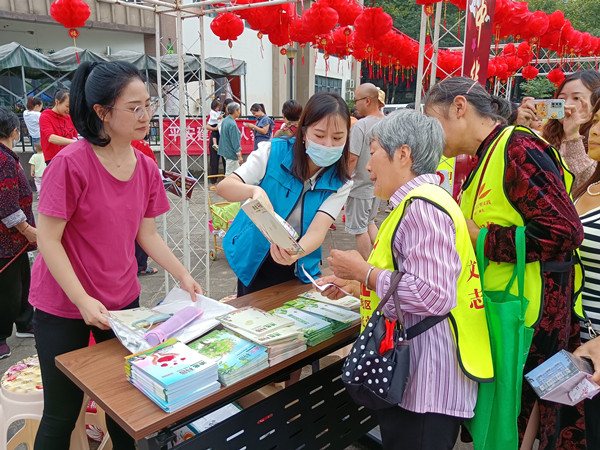 人民網重慶9月18日電 “今天這個活動太好耍了,我們猜了燈謎,又學到了科學知識!9月17日,在渝北區回興街道錦華路社區黛瑰苑廣場,參與活動的居民李阿姨如是說。當日,回興街道聯合渝北區科協在錦華路、科桐路兩個社區開展了“全國科普日”主題宣傳活動,通過發放宣傳資料、開展民俗活動、舉辦文藝演出等方式,“花式”宣傳科學環保知識,提升轄區居民環保意識。
