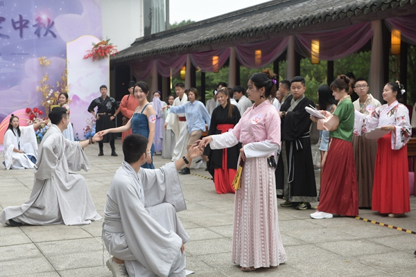 本次聯誼活動結合中秋習俗和中華傳統文化設置各環節內容,讓青年男女在漢風古韻中交流互動、傳情達意;顒又,通過“搖簽定緣”“心有靈犀”“魂牽夢影”“嫦娥奔月”等一系列互動性強的游戲,為青年們營造了輕松、浪漫和溫馨的交流氛圍,在游戲中大家相互協作、積極互動,加深了解、增進友誼。在最后“真情告白”環節,男女嘉賓手持告白禮物,向心儀的他(她)表達心意。