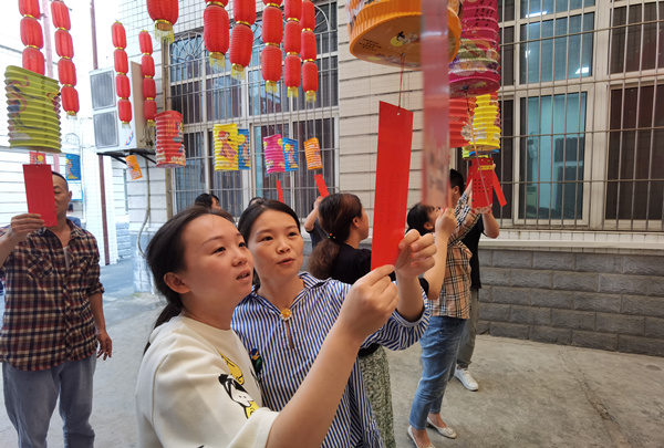 干部與居民參與猜燈謎活動。統景鎮供圖