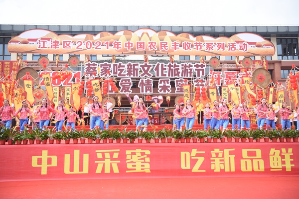 人民網重慶9月19日電 金秋時節,也是豐收的季節。為挖掘和弘揚“吃新”民俗文化,傳承農耕文明,18日,江津區蔡家吃新文化旅游節暨中山愛情采蜜節活動在中山鎮游客中心拉開帷幕。