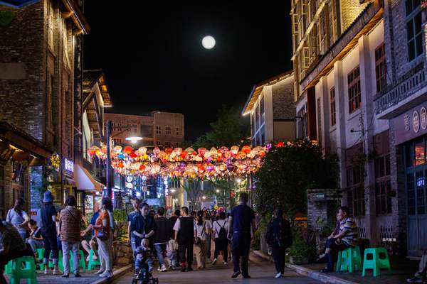 在金佛山景區,中秋拜月、漢服游園、川劇變臉、古風舞蹈等豐富的傳統表演,民俗氛圍滿滿,仿佛把人們帶回遙遠而又充滿古韻的年代,讓游客感受傳統國風的魅力。在天星小鎮,逛小鎮品美食,賞月泡溫泉,繽紛多彩的夜生活,原汁原味的特色美食,養生養心的天然溫泉,盡享闔家歡樂。在南川東街,賞月表演、親子家庭手工制作月餅、家風故事分享、傳統禮儀展演、東街打卡體驗等一系列活動,回歸自然的樂趣,真情的傳遞。在萬卷書臺,打糍粑、猜燈謎、畫花燈,很是熱鬧。在中海黎香湖,賞燈游園、非遺體驗、美食集市、親子體驗,嗨翻中秋假日。