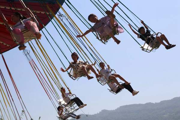 20日,天氣晴好,游客們或在中西合璧的香溪景觀廊橋上拍照打卡,或在網紅S型公路上流連忘返,或爬上雞公山游樂園山頂登高望遠,在景區享受愜意的秋日風光。年輕人則在刺激的游樂設施上狂歡,年長的坐索道或摩天輪賞景,尤其是9.99元無限次不限時坐吊椅、吊籃和吊廂三條索道,由于價格低、參與度高,老少咸宜,游客們紛紛拍照或發短視頻到朋友圈,助推了景區的人氣上漲。