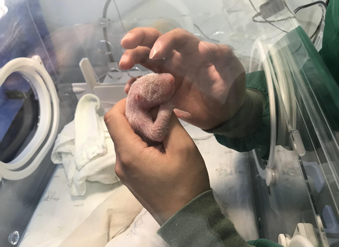 大熊貓“好奇”產下的龍鳳胎寶寶。吳汪洋攝