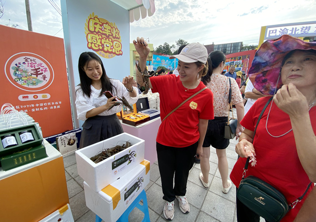 在豐收節活動現場,市民游客不僅可以購買到新鮮、優質的特色農副產品,還能直觀了解到渝北區農業產業發生的巨大變化。同時,渝北區11個鎮的近千名農民群眾,利用農閑時間還精心排練了20余首經典紅色歌曲,并在豐收節舞臺上現場展演。