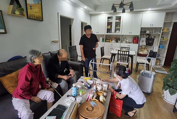 每年八月是工行重慶石柱支行年度較為繁忙的一個月,由于該行負責代發石柱縣部分社保養老金工作,網點內每天上午客流量都超過300人次。八月中旬的一天,工行重慶石柱支行接待了一位神色焦急的客戶彭某,他手里拿著兩張醫?ㄕ埱蠊ぷ魅藛T幫忙激活!拔业陌謰屇晔乱迅,且行動不便,目前都在鄉下養老院里面臥床療養,沒法親自前來辦理業務,該怎么辦?”工作人員見狀,連忙耐心地與其溝通,在詳細了解情況之后,大堂經理表示:“如果兩位老人確實存在著困難, 我們可以提供上門服務。核實情況后,可以由親屬代辦業務!