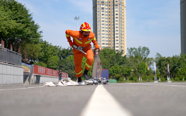 阮洋洋說,取得這個成績,沒竅門,就一個字“練”!日復一日的練!單就快速連接水帶、分水器和水槍這一動作,別看只要一兩秒,他在消防干了多少年,就練了多少年。