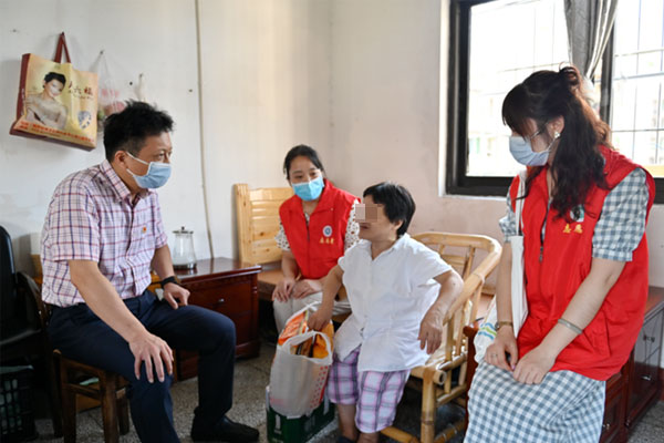 人民網重慶9月26日電 9月24日,重慶市第十三人民醫院黨委書記廖肇州、唐家灣社區黨委副書記李偉等一行7人來到延孝敬老院開展走訪慰問!捌綍r街道和社區對我們幫助很多,這么熱的天你們還特意來看望我,我心里十分高興,真是太感動了!”孤寡老人蔣志芳說。