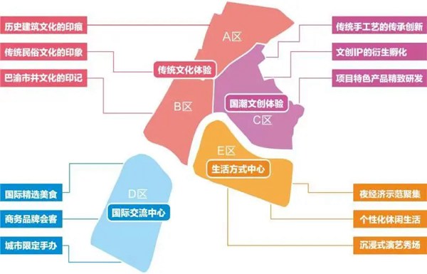 同時,融合商、景、旅、文四大功能于一體,創新商業模式并獨具特色,在區域內展現重慶八百年的文化生活全景,打造強體驗性的文旅商業示范基地。