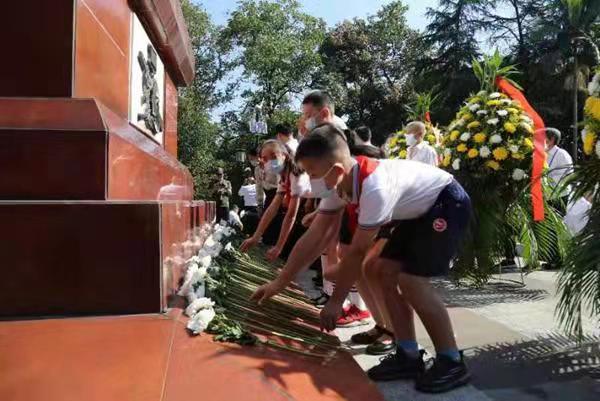 上午10點整,在莊嚴肅穆的氣氛中,公祭活動正式開始。在奏響 《中華人民共和國國歌》后,全體人員脫帽肅立,向烈士默哀寄托哀思之情。隨后,全體人員向烈士紀念碑獻花。
