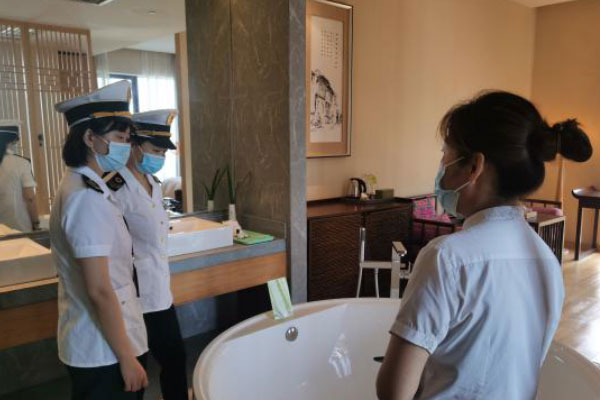 內強功力,重檢查、強要求徹查住宿、溫泉場所風險點。北碚區衛生健康綜合執法支隊出動監督員40余人次對20余家重點住宿、溫泉場所開展衛生監督檢查,從衛生許可證持證亮證、衛生管理檔案和制度建立到從業人員健康證持證和衛生知識培訓;從空氣、微小氣候和顧客用品用具等衛生檢測到床單、毛巾等公共用品的清洗、消毒和保潔等方面進行全方位的衛生監督檢查,確保旅客住的安心、用的放心。