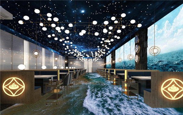 在大路拼·互聯網智能火鍋店內,大量使用5D、全息等技術參與裝修設計,提升旗艦店裝飾水平。