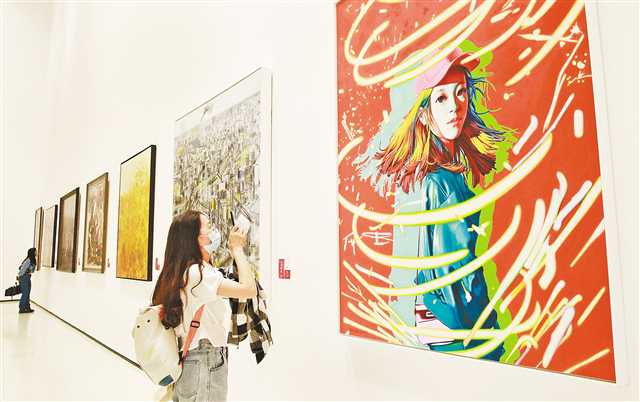 10月2日,在四川美術學院美術館,市民正在觀看展覽。 通訊員 趙杰昌 攝/視覺重慶