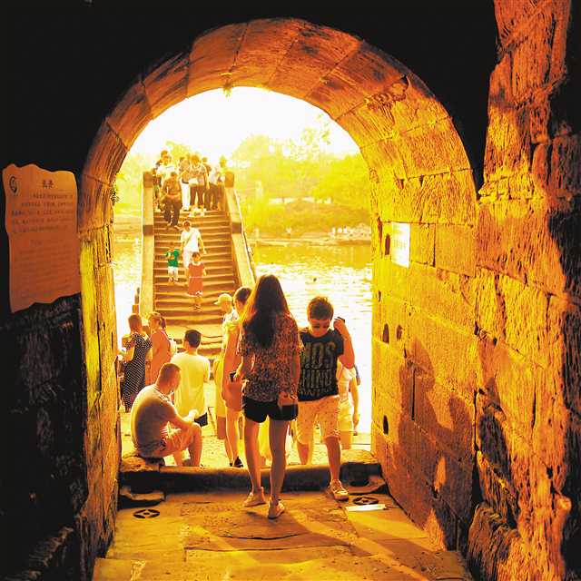 10月4日,游客在榮昌區萬靈古鎮享受“漫游”時光。通訊員 張成杰 攝/視覺重慶